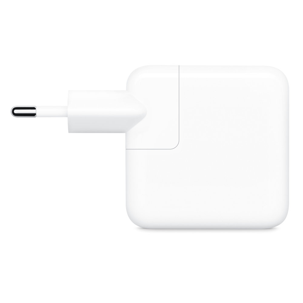 35W dvoportni USB-C strujni adapter omogućuje vam punjenje dva uređaja istovremeno, bilo kod kuće, u uredu ili na putu. Apple preporučuje njegovu upotrebu s MacBook Airom. Također ga možete koristiti s iPhoneom, iPadom, Apple Watchom i AirPodsima.