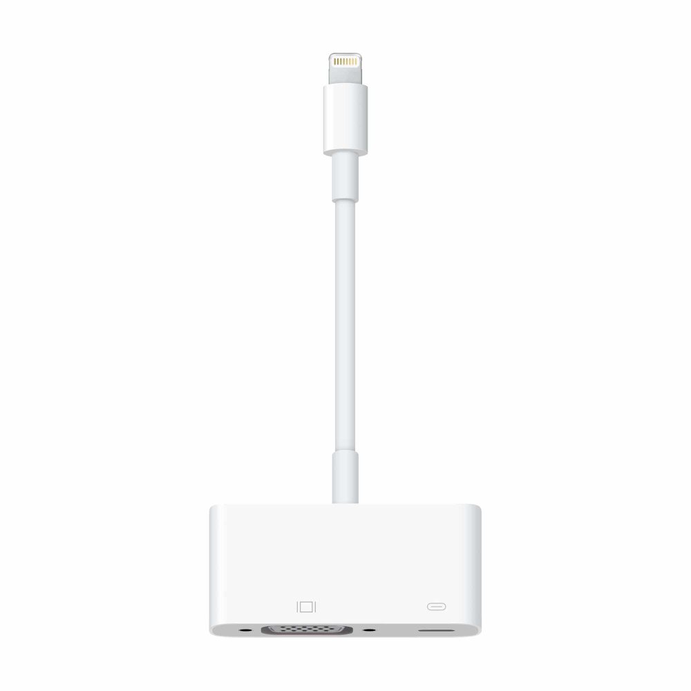 Lightning na VGA adapter koristi sa svojim iPhoneom, iPadom ili iPodom s Lightning priključkom. Lightning na VGA adapter podržava zrcaljenje sadržaja koji se prikazuje na zaslonu uređaja, uključujući aplikacije, prezentacije, internetske stranice, dijaprojekcije i dr., na tvoj televizor s HDMI-jem, zaslon, projektor ili neki drugi kompatibilni zaslon do 1080p HD. Također šalje videosadržaj (filmove, TV serije, snimljene videozapise) na veliki zaslon rezolucije do 1080p HD. Jednostavno pričvrsti Lightning na VGA adapter na Lightning priključak na svom uređaju, a zatim pomoću VGA kabla na TV ili projektor (VGA kabel prodaje se zasebno).