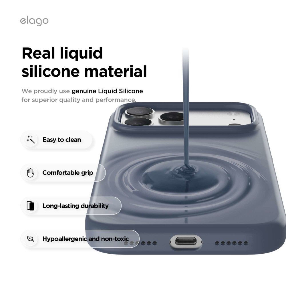 ELAGO Magnetic Silicone Case za iPhone 17 Pro Max izrađen je od kvalitetnog silikona koji pruža udobno prianjanje i pouzdanu zaštitu, a ugrađeni magneti osiguravaju potpunu MagSafe kompatibilnost.