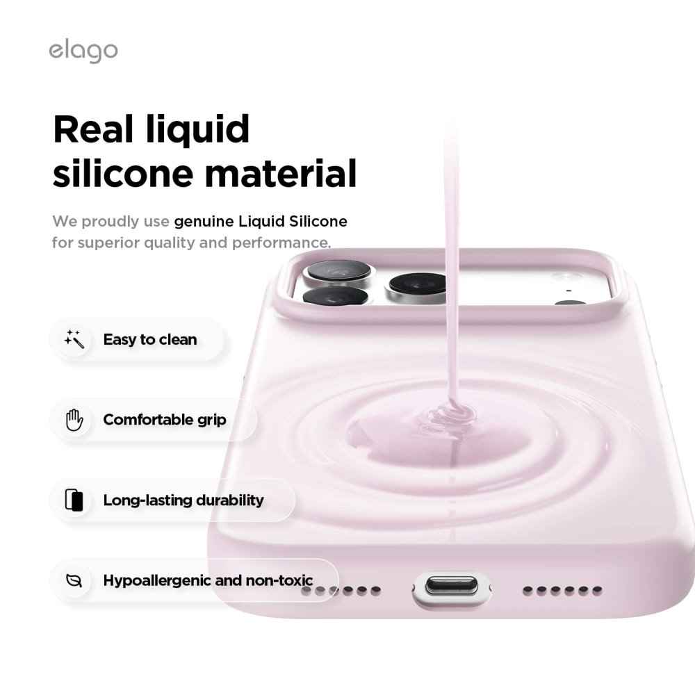 ELAGO Magnetic Silicone Case za iPhone 17 Pro Max izrađen je od kvalitetnog silikona koji pruža udobno prianjanje i pouzdanu zaštitu, a ugrađeni magneti osiguravaju potpunu MagSafe kompatibilnost.