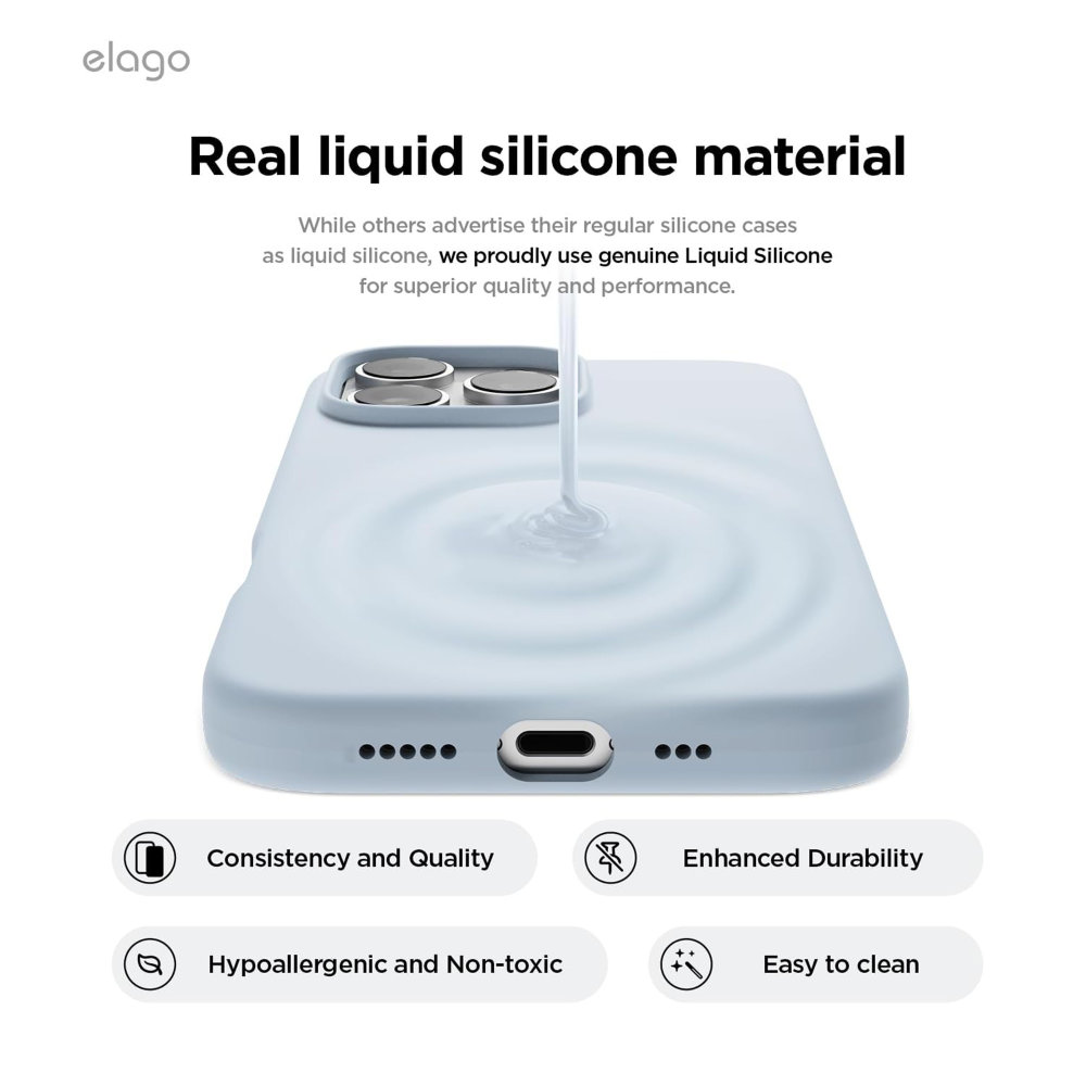 ELAGO MagSafe Silicone Case za iPhone 16 Pro izrađena je od mekane i izdržljive silikonske prevlake. Precizni izrezi omogućavaju neometan pristup gumbima, portovima i MagSafe funkcijama. Tanki dizajn čuva izgled uređaja, a ugodan osjećaj na dodir pruža siguran grip. Kućište štiti iPhone od ogrebotina i udaraca, dok MagSafe magnetski sustav omogućuje stabilno povezivanje dodatne opreme i bežično punjenje.