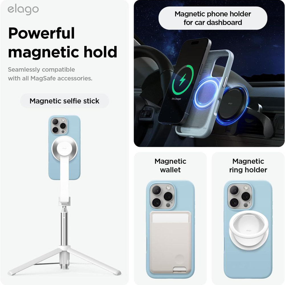 ELAGO MagSafe Silicone Case za iPhone 16 Pro Max izrađena je od mekane, ali izdržljive silikonske prevlake. Precizni izrezi omogućuju neometan pristup gumbima, portovima i MagSafe funkcijama. Tanki dizajn čuva elegantan izgled uređaja, a ugodan osjećaj na dodir pruža siguran grip. Kućište štiti uređaj od ogrebotina i udaraca, dok MagSafe magnetski sustav omogućuje stabilno povezivanje dodatne opreme i bežično punjenje.