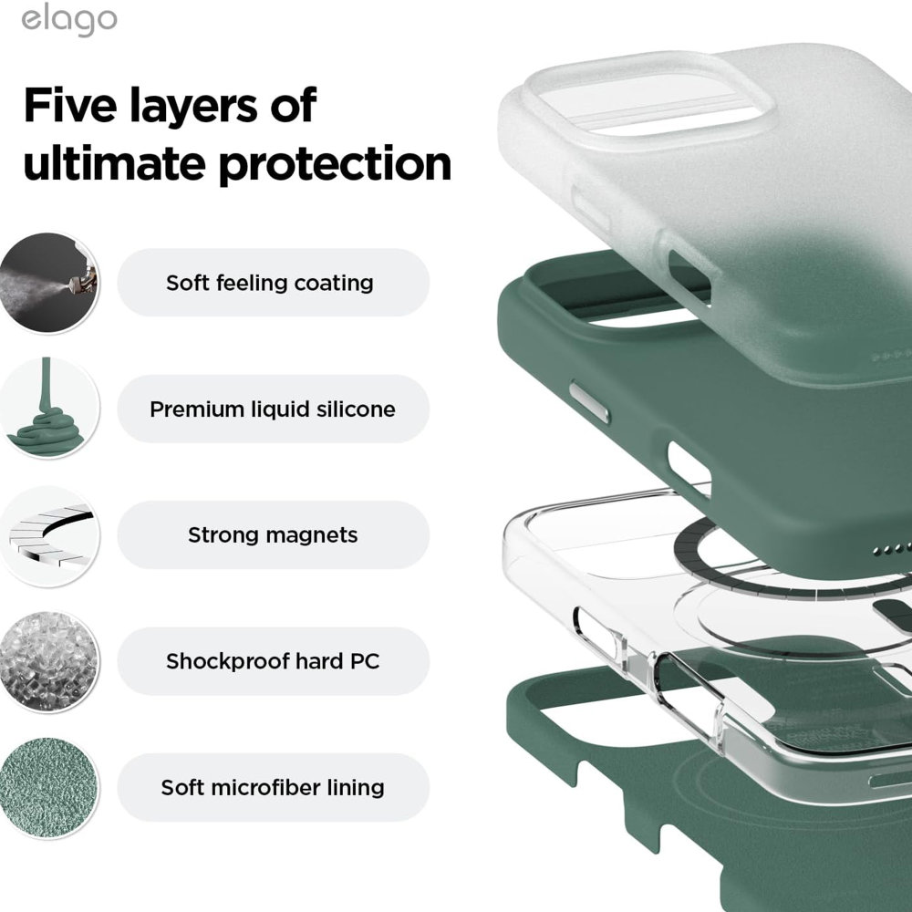 ELAGO Magsafe Silicone Case za iPhone 16 Pro - Midnight Green