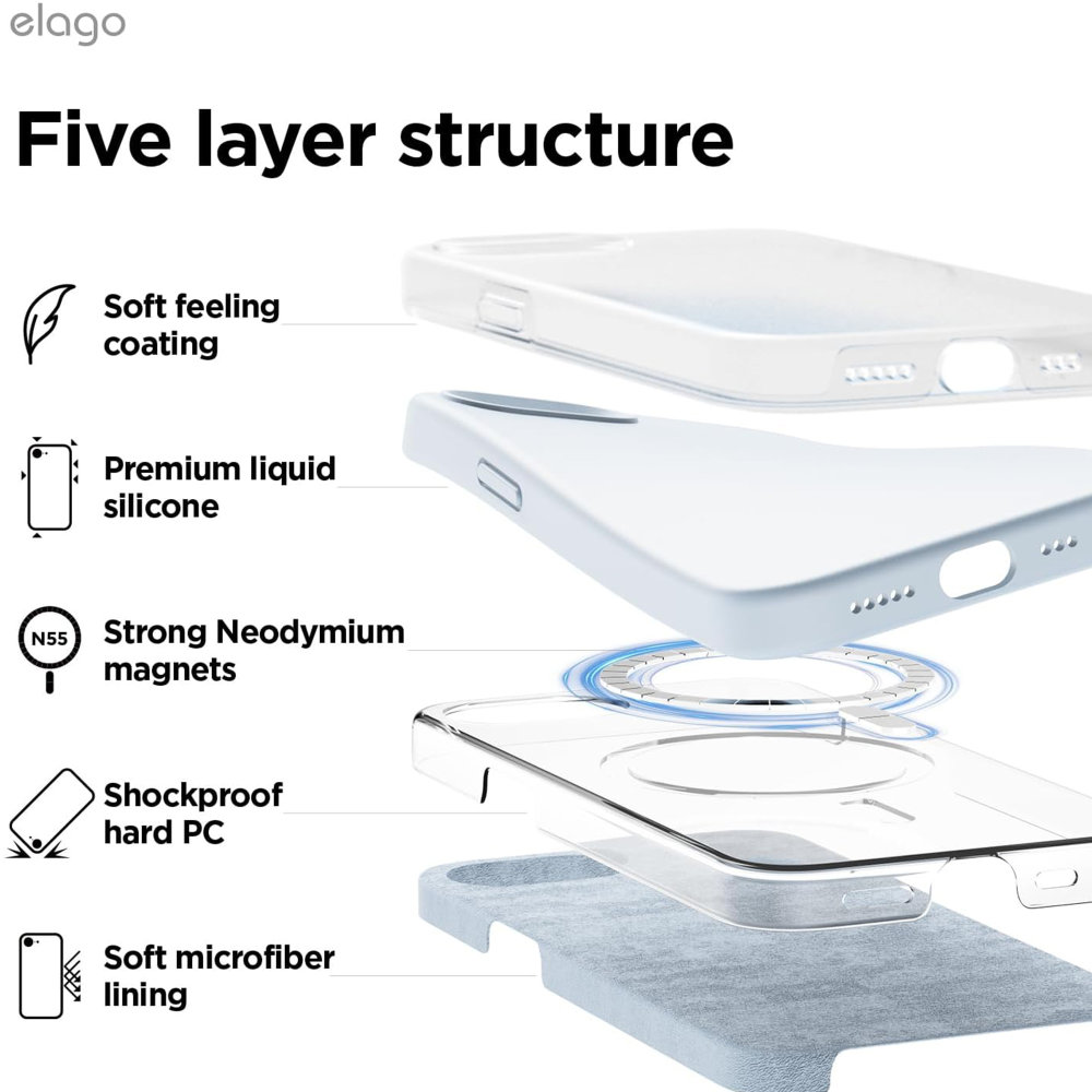 ELAGO Magsafe Silicone Case za iPhone16e 2025 Light Blue