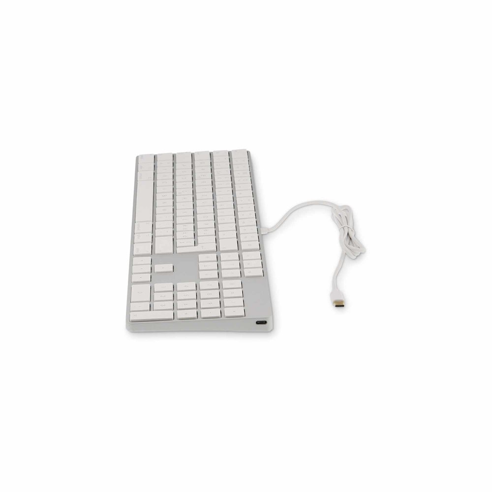 KB-1843 ima potpuno aluminijski gornji poklopac i ima dodatni USB-C priključak u desnom gornjem kutu za razmjenu podataka s uređajima male snage (npr. USB-C miš). Tipične posebne funkcijske tipke za Mac mogu se koristiti ili kao tiskani simboli (npr. povećanje/smanjenje svjetline, reprodukcija/pauza, itd.) ili kao stvarne programabilne funkcijske tipke. Prebacivanje između ove dvije funkcije je jednostavno jednostavnom kombinacijom tipki ("fn + esc"). Laserski ugravirane kapice tipki imaju kratku udaljenost koja je vrlo slična MacBook tipkama. Elegantan izgled savršeno pristaje vašem Mac i iPad Pro okruženju - radi učinkovito i sa stilom.
