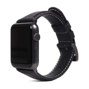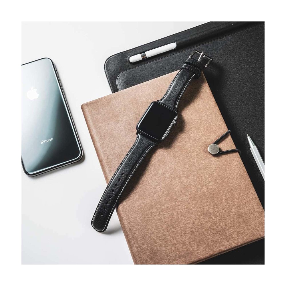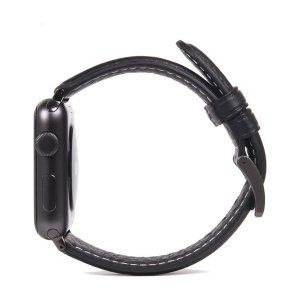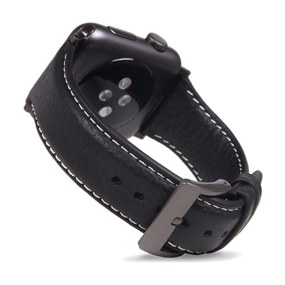 SLG D6 Kožni remen s prugama za Apple Watch 42/44mm - Crni