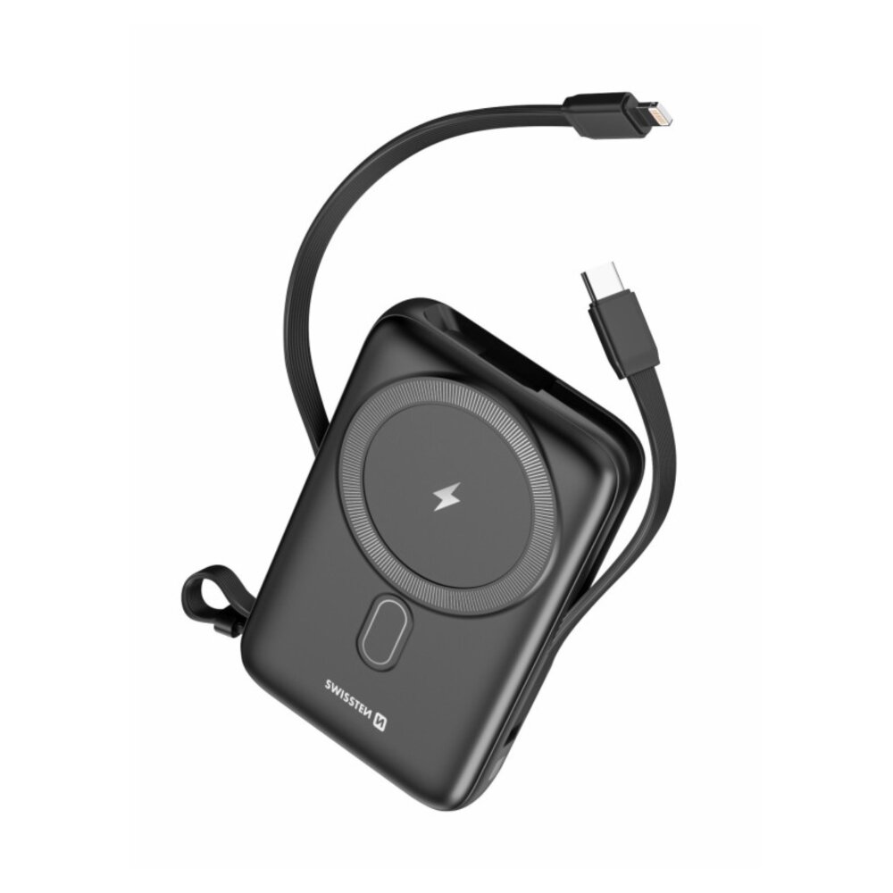 Swissten Magsafe baterija 10000 mAh 20W sa ugrađenim USB-C i Lighting kabelom