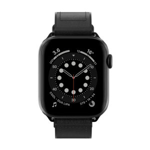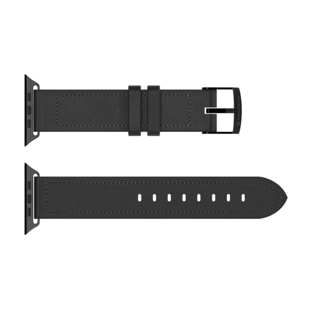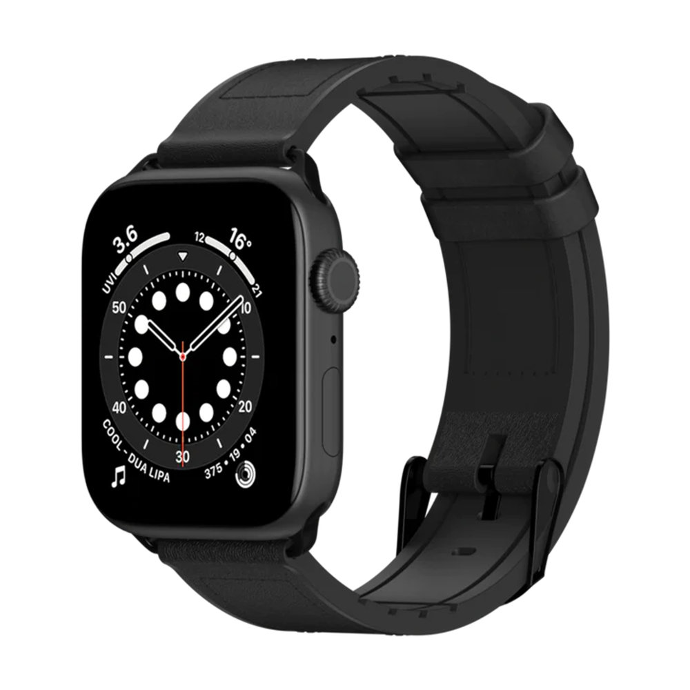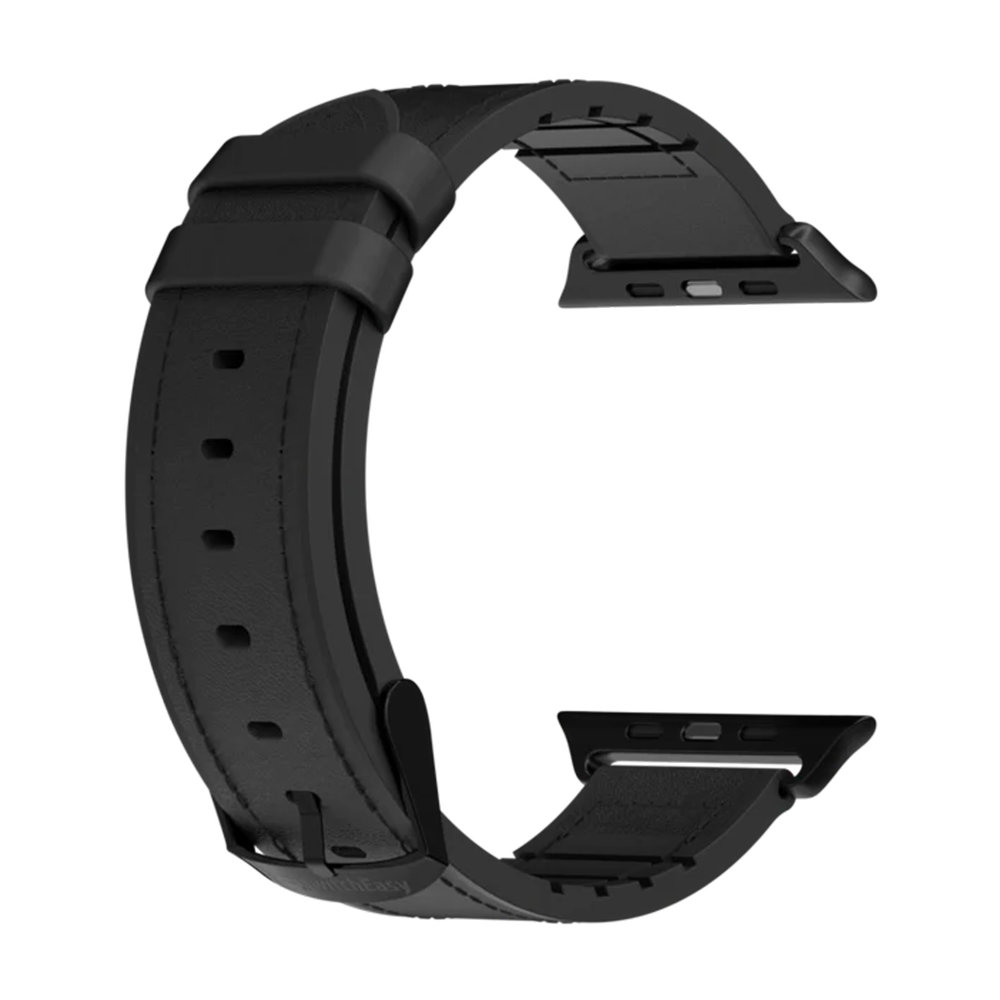 SWITCHEASY Hibridni silikonsko-kožni remen za Apple Watch 42/44/45mm - Crni